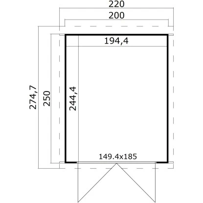 Das Lasita Gartenhaus aus Holz ist platzsparend gestaltet mit einer Grundfläche von 4,75 m². Es bietet eine Durchgangsbreite von 141,8 cm und eine Durchgangshöhe von 179,2 cm. Der breite Eingang ermöglicht ein einfaches Betreten des Holz-Gartenhauses, auch mit größeren Geräten, Gartenutensilien, Fahrrädern und Gartenmöbeln. Die Firsthöhe beträgt 210,9 cm, wodurch eine angenehme Kopffreiheit im Innenraum gegeben ist. Der Boden ist separat erhältlich.