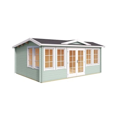 Das Gartenhaus aus Holz überzeugt durch sein klassisches Design und ist dabei in der Farbe Gletschergrün gehalten. Es eignet sich für den universellen Einsatz als Geräteschuppen, Gartenpavillon oder Freizeithaus.