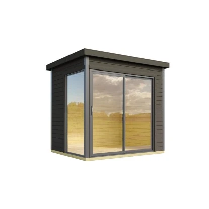 Das Gartenhaus überzeugt durch sein klassisches Design und ist dabei in der Farbe Carbongrau gehalten. Es eignet sich für den universellen Einsatz als Geräteschuppen, Gartenpavillon oder Freizeithaus.