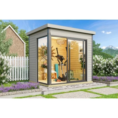 Das Gartenhaus aus Holz überzeugt durch sein klassisches Design und ist dabei in schlichtem Lichtgrau gehalten. Es eignet sich für den universellen Einsatz als Geräteschuppen, Gartenpavillon oder Freizeithaus.