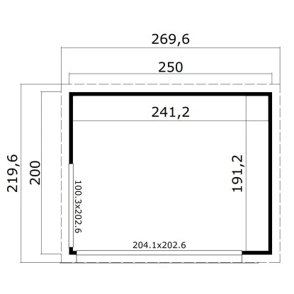 Das Lasita Holz-Gartenhaus ist platzsparend gestaltet mit einer Grundfläche von 4,61 m². Es bietet eine Durchgangsbreite von 204 cm und eine Durchgangshöhe von 203 cm. Der breite Eingang ermöglicht ein bequemes Betreten des Holz-Gartenhauses, auch mit größeren Geräten, Gartenutensilien, Fahrrädern und Gartenmöbeln. Die Firsthöhe beträgt 239 cm, wodurch eine angenehme Kopffreiheit im Innenraum gegeben ist. Der Boden ist bereits im Lieferumfang enthalten.