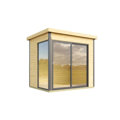 Durch die naturbelassene Oberfläche bleibt eine natürliche Optik mit Holzmaserung erhalten. Zum Schutz vor Witterungseinflüssen sollte die Oberfläche individuell mit einer Lackierung oder Lasierung veredelt werden. Das Holz-Gartenhaus verfügt über eine robuste Konstruktion, mit einer Wandstärke von 44 mm. Die maximalen Schneelast des Pultdachs liegt bei 193 kg/m. Die Dacheindeckung ist separat erhältlich.