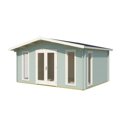 Das Gartenhaus überzeugt durch sein klassisches Design und ist dabei in der Farbe Gletschergrün gehalten. Es eignet sich für den universellen Einsatz als Geräteschuppen, Gartenpavillon oder Freizeithaus.