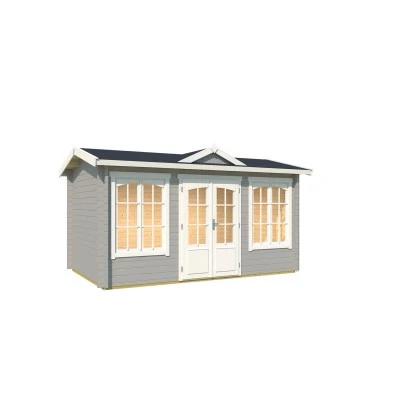 Das Gartenhaus aus Holz überzeugt durch sein klassisches Design und ist dabei in der Farbe Lichtgrau gehalten. Es eignet sich für den universellen Einsatz als Geräteschuppen, Gartenpavillon oder Freizeithaus.