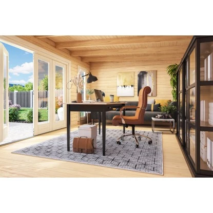 Das Lasita Holz-Gartenhaus ist großzügig gestaltet mit einer Grundfläche von 19,71 m². Es bietet eine Durchgangsbreite von 260 cm und eine Durchgangshöhe von 196 cm. Der breite Eingang ermöglicht ein einfaches Betreten des Holz-Gartenhauses, auch mit größeren Geräten, Gartenutensilien, Fahrrädern und Gartenmöbeln. Die Firsthöhe beträgt 239 cm, wodurch eine angenehme Kopffreiheit im Innenraum gegeben ist. Der Boden ist bereits im Lieferumfang enthalten.