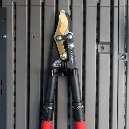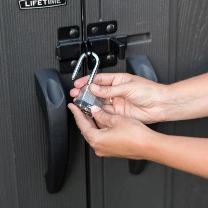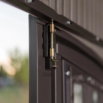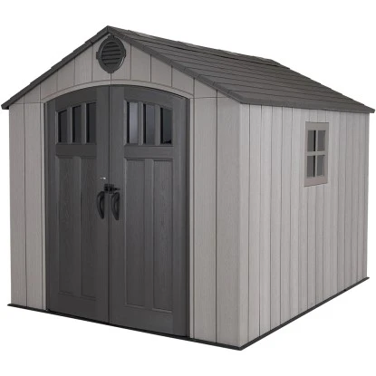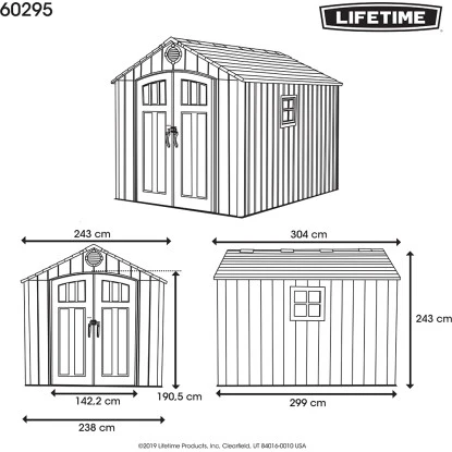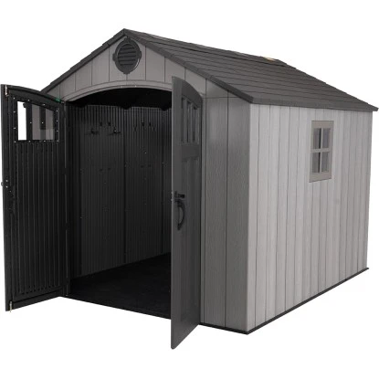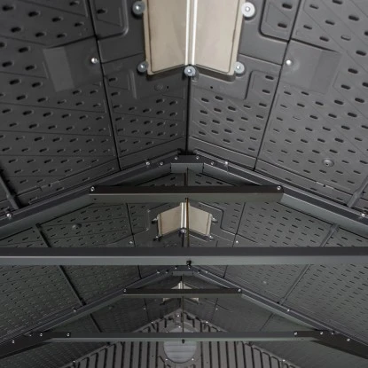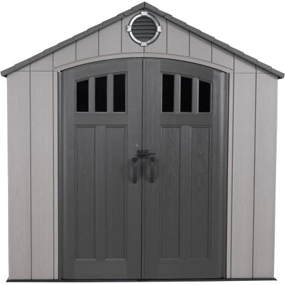 Das Lifetime Kunststoff-Gerätehaus in Grau ist kompakt gestaltet mit einer Grundfläche von 6,9 m². Das moderne Gartenhaus eignet sich besonders zur Aufbewahrung von Gegenständen. Es bietet eine Durchgangsbreite von 142 cm und eine Durchgangshöhe von 193 cm. Der breite Eingang ermöglicht ein einfaches Betreten des Holz-Gartenhauses, auch mit größeren Geräten, Gartenutensilien, Fahrrädern und Gartenmöbeln.