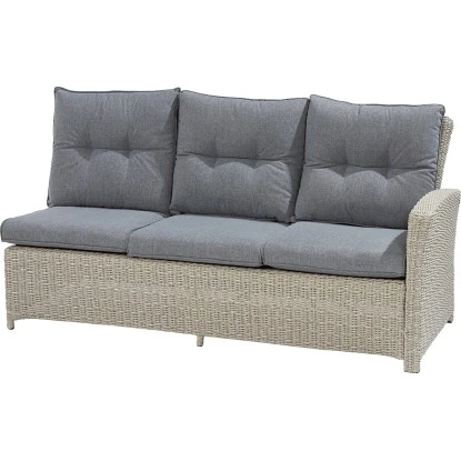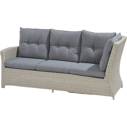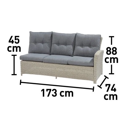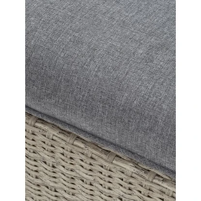 Die Garten-Loungemöbel sind handgeflochten, wodurch sie zu einem edlen Unikat werden. Das Polyrattan-Geflecht in der Farbe Cloud ist witterungsbeständig. Durch das leichte, jedoch stabile Aluminiumgestell punktet das Set mit einem einfachen Handling, da die einzelnen Möbelstücke leicht an die gewünschte Stelle bewegt werden können. Die bequemen Auflagen und Kissen in der Farbe Fossil sind mitenthalten. Die Bezüge bestehen aus 100 % Polyester. Schaumstoff mit einer Stärke von 10 cm ist das Füllmaterial der Sitzkissen. Die Rückenkissen sind mit gesponnenem Polyester, das 6 cm Stärke aufweist, gefüllt.