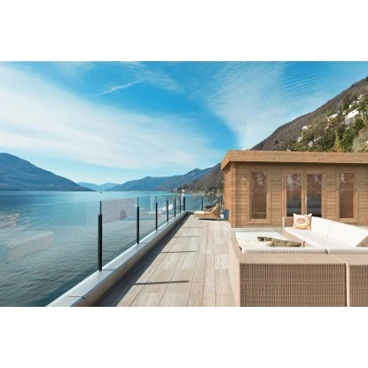 Das Gartenhaus aus Holz überzeugt durch sein modernes Design und ist dabei in der Farbe Braun gehalten. Es eignet sich zum Verweilen, als Gartenpavillon, Geräteschuppen oder Freizeithaus.