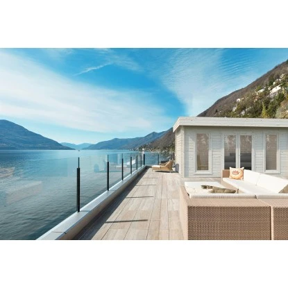 Das Holz-Gartenhaus überzeugt durch sein modernes Design und ist dabei in schlichtem Natur gehalten. Es eignet sich zum Verweilen, als Gartenpavillon, Geräteschuppen oder Freizeithaus.