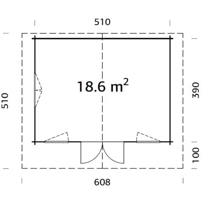 Das Palmako Gartenhaus aus Holz ist praktisch gestaltetmit einem Rauminhalt von 47,3 m³. Es bietet eine Durchgangsbreite von 151 cm und eine Durchgangshöhe von 183 cm. Der breite Eingang ermöglicht ein bequemes Betreten des Holz-Gartenhauses, auch mit größeren Geräten, Gartenutensilien, Fahrrädern und Gartenmöbeln. Die Firsthöhe beträgt 290 cm, wodurch eine angenehme Kopffreiheit im Innenraum gegeben ist. Der Boden ist bereits im Lieferumfang enthalten.