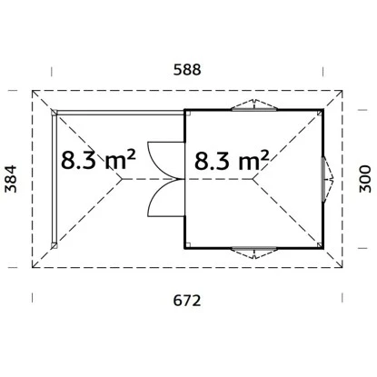 Das Palmako Gartenhaus aus Holz ist großzügig gestaltet mit einer Grundfläche von 16,6 m². Es bietet eine Durchgangsbreite von 151 cm und eine Durchgangshöhe von 175 cm. Der breite Eingang ermöglicht ein bequemes Betreten des Holz-Gartenhauses, auch mit größeren Geräten, Gartenutensilien, Fahrrädern und Gartenmöbeln. Die Firsthöhe beträgt 323 cm, wodurch eine angenehme Kopffreiheit im Innenraum gegeben ist. Der Boden ist separat erhältlich.