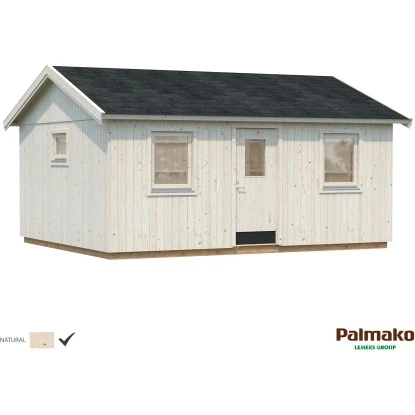 Mit dem Palmako Element-Gartenhaus Pernilla bringen Sie schlichten, nordischen Charme in Ihren Garten. Die vorgefertigten Wandelemente sind mit einer Dampfbremsfolie sowie einem 18 mm starken und sägefeinen Fassadenbrett versehen. Diese Elementbauweise erlaubt eine problemlose und schnelle Montage. Innen können die Wandelemente mit einer bis zu 95 mmm starken Isolierung versehen werden, die auch Versorgungsleitungen aufnehmen. Die Elementrahmen werden aus 44×95 mm starken nordischen Fichte Hölzer gefertigt und ergeben mit Lüftungslatten, Verkleidungsstützen und den Fassadenbrettern eine Gesamtstärke von 160 mm. Geliefert wird das Gartenhaus mit einem stabilen 19 mm starken Fußboden, Dachbrettern, sowie nach außen öffnenden Fenstern und einer Tür, die mit Iso-Glas versehen sind. Die Eingangstür besteht aus einem Leimholzrahmen und erhält zusätzlich eine EPS Isolierung. Das Einsteckschloss, der Profilzylinder und die Drückergarnitur sind im Lieferumfang enthalten. Den eigenen Touch können Sie durch die individuelle Anordnung der Fenster und Tür erreichen. Das Haus steht auf kesseldruckimprägnierten Hölzern, ein Montageset wird mitgeliefert. Die sägefeinen Fassadenbretter sind naturbelassen und daher ideal für farbige Anstriche. Um das Gartenhaus vor Witterungseinflüssen zu schützen ist eine Grundierung als auch Endbehandlung mit einer Holzlasur bzw. Holzfarbe erforderlich. Ihr fertiges Gartenhaus bietet auch die Nutzung als Homeoffice rund ums Jahr! Dacheindeckung nicht im Lieferumfang enthalten.