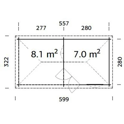 Palmako Holz-Pavillon Melanie 7,0 + 8,1 m² aus 28 mm Blockbohlen mit winddichter Chaletschnitt-Eckverbindung mit Eckeinstieg. Der Pavillon verfügt über eine praktische Überdachung mit Rückwand. Die stabile, teilverglaste Doppeltür mit Leimholzrahmen und Zylinderschloss hat niedrige, mit Edelstahl abgedeckte Türschwelle. Die Doppeltür und tiefe, nach Außen öffnende Doppelfenster haben Einfachverglasung und aufgesetzte Sprossen. Zum Bausatz gehören auch imprägnierte Fundamenthölzer, 16 mm Dachbretter und 19 mm Fußbodenbretter mit Nut und Feder, Sturmleisten, sowie Montageset. Der Pavillon ist bereits mit einer transparenten Tauchgrundierung versehen und kann nach dem Aufbau mit allen handelsüblichen Farben weiterbehandelt werden. Dacheindeckung ist nicht im Lieferumfang enthalten. Der Pavillon kann auch spiegelverkehrt aufgebaut werden.