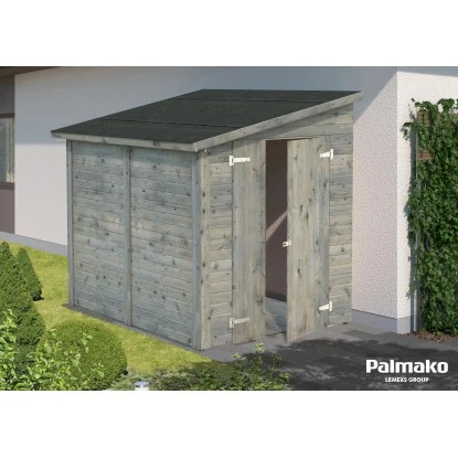 Das Palmako Gartenhaus aus Holz ist praktisch gestaltetmit einem Rauminhalt von 6,4 m³. Es bietet eine Durchgangsbreite von 103 cm und eine Durchgangshöhe von 166 cm. Der breite Eingang ermöglicht ein einfaches Betreten des Holz-Gartenhauses, auch mit größeren Geräten, Gartenutensilien, Fahrrädern und Gartenmöbeln. Die Firsthöhe beträgt 210 cm, wodurch eine angenehme Kopffreiheit im Innenraum gegeben ist. Der Boden ist bereits im Lieferumfang enthalten.