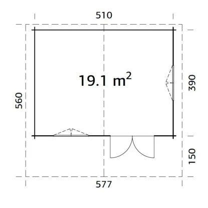Das Palmako Gartenhaus aus Holz ist großzügig gestaltet mit einer Grundfläche von 19,1 m². Es bietet eine Durchgangsbreite von 151 cm und eine Durchgangshöhe von 186 cm. Der breite Eingang ermöglicht einen einfachen Zugang des Holz-Gartenhauses, auch mit größeren Geräten, Gartenutensilien, Fahrrädern und Gartenmöbeln. Die Firsthöhe beträgt 267 cm, wodurch eine angenehme Kopffreiheit im Innenraum gegeben ist. Der Boden ist bereits im Lieferumfang enthalten.