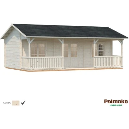 Das Gartenhaus ist in Blockbohlenbauweise aus unbehandeltem Holz gefertigt. Durch die naturbelassene Oberfläche bleibt eine natürliche Optik mit Holzmaserung erhalten. Zum Schutz vor Witterungseinflüssen sollte die Oberfläche individuell mit einer Lackierung oder Lasierung veredelt werden. Das Haus verfügt über eine robuste Konstruktion, mit einer Wandstärke von 44 mm. Die maximalen Schneelast des Satteldachs liegt bei 254 kg/m. Die Dacheindeckung ist separat erhältlich.