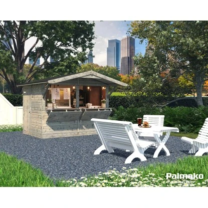 Das Holz-Gartenhaus überzeugt durch sein klassisches Design und ist dabei in schlichtem Grau gehalten. Es eignet sich für den universellen Einsatz als Geräteschuppen, Gartenpavillon oder Freizeithaus.