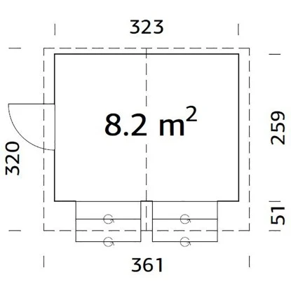 Das Palmako Gartenhaus aus Holz ist praktisch gestaltetmit einem Rauminhalt von 17,7 m³. Es bietet eine Durchgangsbreite von 76 cm und eine Durchgangshöhe von 169 cm. Der breite Eingang ermöglicht ein einfaches Betreten des Holz-Gartenhauses, auch mit größeren Geräten, Gartenutensilien, Fahrrädern und Gartenmöbeln. Die Firsthöhe beträgt 239 cm, wodurch eine angenehme Kopffreiheit im Innenraum gegeben ist. Der Boden ist separat erhältlich.