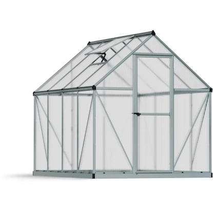 Das Palram – Canopia Gewächshaus Mythos mit einer Fläche von 4,6 m² in Silber ermöglicht es Ihnen, gleichmäßige Temperaturen und diffuses Sonnenlicht für empfindliche Pflanzen zu schaffen. Es handelt sich um ein elegantes Gewächshaus mit nahezu unzerbrechlichen, doppelwandigen Polycarbonatplatten und einem robusten, rostfreien Aluminiumrahmen.