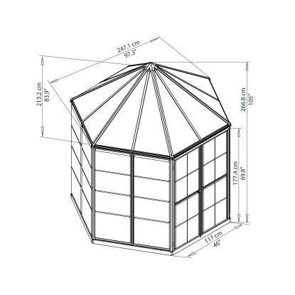 Palram – CanopiaOasis 2.5 X 2.1 Gewächshaus Rund Gewächshaus Hexagon Glas Pavi