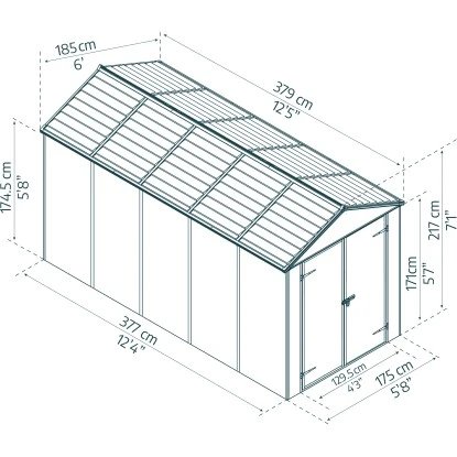 Das Palram – Canopia Metall-Gerätehaus ist kompakt gestaltet mit einer Grundfläche von 7 m². Das ansprechende Gerätehaus eignet sich besonders zur Aufbewahrung von Gegenständen. Der breite Eingang ermöglicht ein einfaches Betreten des Holz-Gartenhauses, auch mit größeren Geräten, Gartenutensilien, Fahrrädern und Gartenmöbeln. Es bietet eine Durchgangsbreite von 129,5 cm und eine Durchgangshöhe von 171 cm.