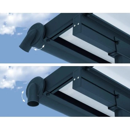 Inkl. Regenrinne und Schrauben-Kit zur Befestigung an Wand und Boden.