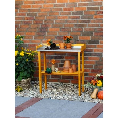 Dieser stabile Pflanztisch mit verzinkter Arbeitsfläche macht nicht nur in einem Gewächshaus eine gute Figur, sondern kommt auch auf einer Terrasse gut zur Geltung. Der Pflanztisch ist aus massivem Kiefernholz gefertigt und wetterfest imprägniert.