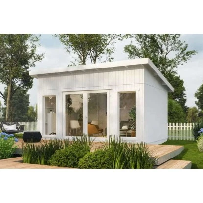 Das Gartenhaus überzeugt durch sein modernes Design. Es eignet sich für den universellen Einsatz als Geräteschuppen, Gartenpavillon oder Freizeithaus.