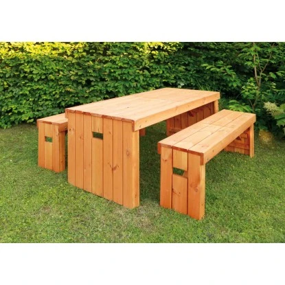 Diese moderne Sitz-Garnitur „Rotterdam“ aus FSC-zertifizierten Nadelholz ist bereits werkseitig in einem honigbraunen Farbton wetterfest imprägniert. Die beiden jeweils 162cm breiten Sitzbänke bieten insgesamt min. 6 Personen ausreichend Platz zum bequemen Verweilen und können einfach unter dem Tisch platzsparend verstaut werden. Maße Bänke: B 162 x T 35 x H 47 cm. Maße Tisch: B 180 x T 75 x H 74 cm. Gewicht ohne Verpackung: 86 kg