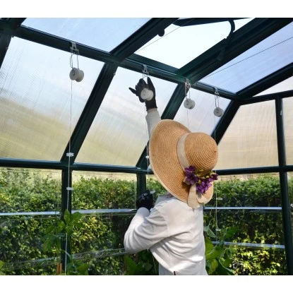 Bei der Prestige Serie erhalten Sie das Rund-Um-Sorglos Paket mit allen Zubehörteilen. Neben dem Fundamentrahmen erhalten Sie zudem Pflanztische, Befestigungshaken, Bewässerungskit, Tomatenrank-Kit, Lamellenfenster inkl. automatischem Öffner und Dachfenster mit automatischen Öffner. Die mitgelieferte große Doppelflügeltüre und die extreme Höhe von 238 cm zeichnen das Flaggschiff der Rion Kunststoff Gewächshäuser aus.