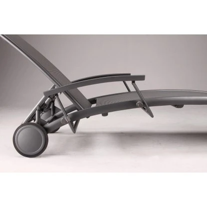 Die Rollliege hat ein Gestell, Armlehnen und Gelenkteile aus Aluminium. Dies macht die Liege absolut witterungs- und korrosionsbeständig und leicht im Handling. Der Bezug besteht aus einer Bespannung aus reißfestem und atmungsaktiven Ergotex-Gewebe. Dieses verleiht dem Design eine einzigartige Note und bietet fantastischen Liegekomfort. Die Rückenlehne ist mehrfach verstellbar. Dank der großen Räder ist die Liege auch auf Rasen leicht fahrbar.