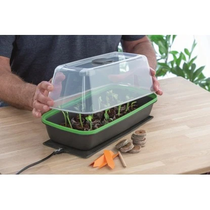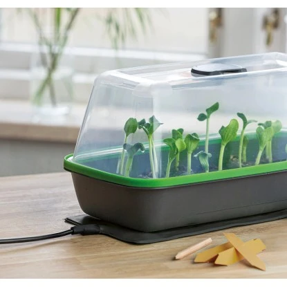 Die Romberg Heizmatte Style eignet sich optimal für den Einsatz unter BoQube Zimmergewächshäusern M (PLUS LED) und L PLUS (LED) sowie unter Terrarien. Die Wärmeabgabe kann mit Hilfe einer Zeitschaltuhr geregelt werden (Zubehör-Artikel „HortSwitch“).