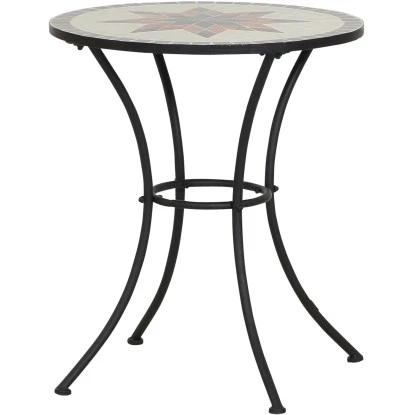 Traumhaft schön, schlank und grazil – so präsentiert sich der Siena Garden Bistrotisch Stella. Mit dem geschwungenen, pulverbeschichteten Stahlgestell und dem wunderbaren Sternmosaik auf der runden Tischplatte ist er das Element, das in Ihrem Märchengarten noch fehlt. Mit einem Durchmesser von 60 cm bietet er ausreichend Platz für gesellige Treffen mit bis zu 4 Personen.