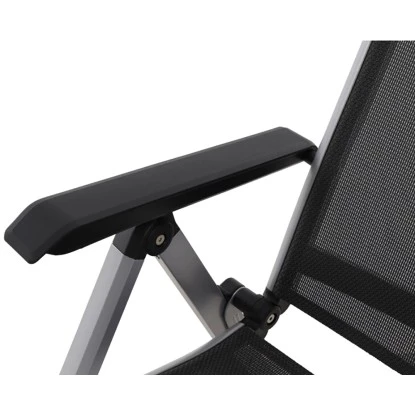 Der Siena Garden Klappsessel Tesoro besteht aus einem pulverbeschichteten Aluminiumgestell in Silber. Der formstabile Ranotex-Bezug in Grau sorgt für bequemes Sitzen, sodass Auflagen nicht notwendig sind. Abgerundet wird der Gesamteindruck durch Armlehnen aus Kunststoff in Schwarz. Die hohe Qualität in Verarbeitung und Material sichern die Langlebigkeit. Hierdurch haben Sie langfristig Freude an diesem Sessel. Da die Rückenlehne 5-fach verstellbar ist, können Sie sich in dem für Sie perfekten Winkel zurücklehnen und entspannen. Der Klappsessel ist wetterfest, pflegeleicht und kann zusammengeklappt platzsparend verstaut werden.