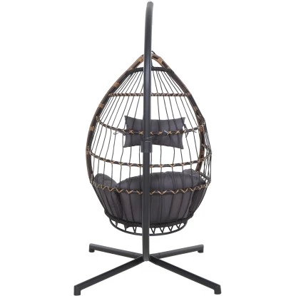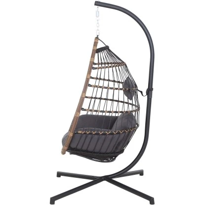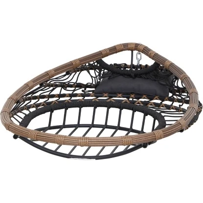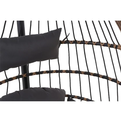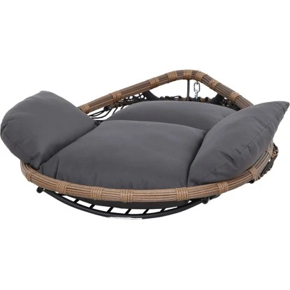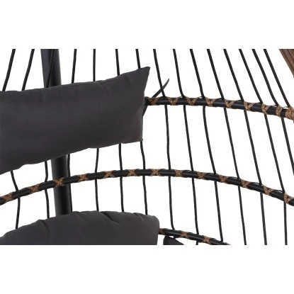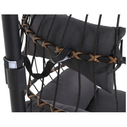 Das Gestell ist aus Stahl und pulverbeschichtet in der Farbe schwarz. Die Flächen sind aus Gardino®-Geflecht rund. /flach in der Farbe royal oak. Inklusive Sitz- und Rückenkissen aus Polyester, 230g/m². Der Hängekorb hat die Maße ca. L: 138 cm x B: 78 cm x H: 87,5 cm und Gestell für den Hängekorb hat die Maße ca. L: 135 cm x B: 135 cm x H: 196 cm. Das Material ist pflegeleicht und die Kissen sind handwaschbar.