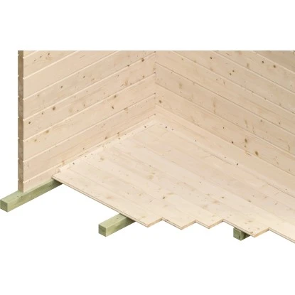 Das Gartenhaus ist in Blockbohlenbauweise aus unbehandeltem Holz gefertigt. Durch die naturbelassene Oberfläche bleibt eine natürliche Optik mit Holzmaserung erhalten. Zum Schutz vor Witterungseinflüssen sollte die Oberfläche individuell mit einer Lackierung oder Lasierung veredelt werden. Das Gerätehaus verfügt über eine robuste Konstruktion, mit einer Wandstärke von 45 mm. Die maximalen Schneelast des Satteldachs liegt bei 125 kg/m. Die Dacheindeckung ist separat erhältlich.