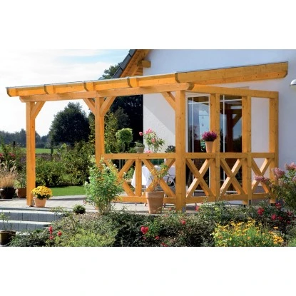 Eventuell abgebildete Terrassenüberdachungen, Farbbehandlung und Dekoration sind nicht im Lieferumfang enthalten. Hier handelt es sich um Kundenfotos, die Ihnen einen Eindruck im eingebauten Zustand vermitteln.