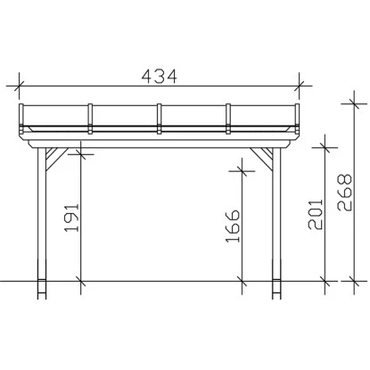 Die Terrassenüberdachung Sanremo ohne Mittelpfosten mit geraden Kopfbändern ist aus Leimholz gefertigt. Pfosten 12 x 12 cm inkl. H-Pfostenanker. Dacheindeckung aus 16 mm Polycarbonat Doppelstegplatten in klar. Lieferung inkl. Aluminium-Schienen, Montagematerial und Aufbauanleitung.