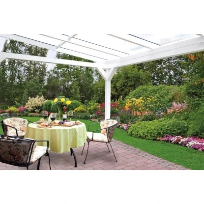 Die Dacheindeckung besteht aus stabilen, 16 mm dicken Polycarbonat Doppelstegplatten in klar. Die Oberseite ist mit einer UV-reflektierenden Schicht versehen. Sie befestigen die Platten mit Hilfe hochwertiger Aluminium-Profile mit EPDM-Lippendichtungen