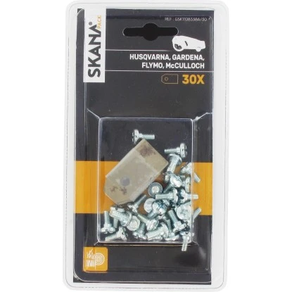 Das Skana Messerklingen-Set ist speziell für Husqvarna-Geräte geeignet und enthält 30 Klingen und 30 Schrauben.