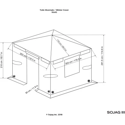 Sojag Pavillon Winterabdeckung für Pavillon 305 cm x 305 cm passend für Passend für Sojag Pavillon 305 cm x 305 cm Die Winterabdeckung dient als Schutz für Ihren Sojag Pavillon 10×10 und deckt alle vorhandenen Seiten ab. Dadurch erhöht sich die Lebensdauer Ihres Pavillons und schützt diesen vor Niederschlag, Schmutz und Kälte. Aufgrund des hochwertigen Materials (200 g/m² Polyethylen) ist die Winterabdeckung extrem stabil und robust. Das Material erlaubt Ihnen die Abdeckung mit einem nassen Schwamm oder Tuch abzuwischen.