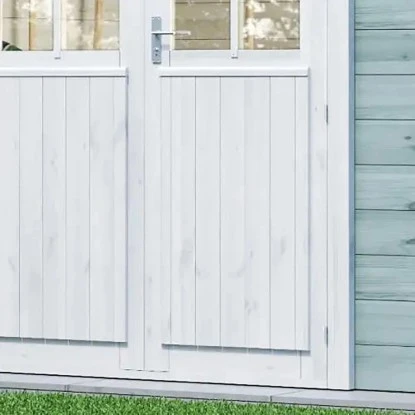 Das Gartenhaus aus Holz ist praktisch gestaltetmit einem Rauminhalt von 8,5 m³. Es bietet eine Durchgangsbreite von 140 cm und eine Durchgangshöhe von 172 cm. Der breite Eingang ermöglicht einen einfachen Zugang des Holz-Gartenhauses, auch mit größeren Geräten, Gartenutensilien, Fahrrädern und Gartenmöbeln. Die Firsthöhe beträgt 202 cm, wodurch eine angenehme Kopffreiheit im Innenraum gegeben ist. Der Boden ist separat erhältlich.
