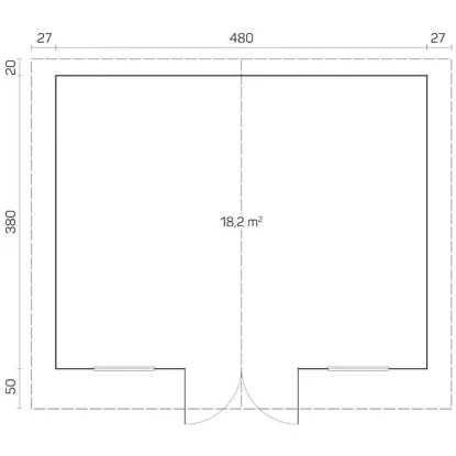 Das Gartenhaus hat ein Außenmaß von 500 cm x 400 cm und ein Sockelmaß von 480 cm x 380 cm. Die Seitenwandhöhe beträgt 194 cm und die Gesamthöhe des Hauses liegt bei 245 cm. Es bietet einen umbauten Raum von 25,2 m³ und eine Grundfläche von 18,2 m². Die Dachfläche beträgt 25,2 m² und der Dachwinkel beträgt 12°. Das Gartenhaus verfügt über eine Leimholz-Doppeltür mit den Maßen 142,5 cm x 183,5 cm und zwei Dreh-/Kipp-Fenster mit den Maßen 76,5 cm x 99 cm. Ein Vordach mit einer Tiefe von ca. 50 cm ist ebenfalls vorhanden. Die Wandstärke beträgt 28 mm.