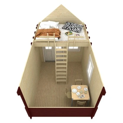 Das Tene Kaubandus Gartenhaus aus Holz ist praktisch gestaltet. Die Firsthöhe beträgt 337 cm, wodurch eine angenehme Kopffreiheit im Innenraum gegeben ist. Der Boden ist bereits im Lieferumfang enthalten.