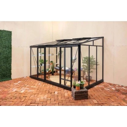 Das Terrando Anlehngewächshaus Elena besticht durch seine hochwertigen Materialien, die eine lange Lebensdauer garantieren. Das Gestell besteht aus pulverbeschichtetem Aluminium, das nicht nur stabil und langlebig ist, sondern auch für eine moderne Optik sorgt. Das Anlehngewächshaus ist mit Sicherheitsglas und Polycarbonatplatten ausgestattet, die für eine optimale Lichtdurchlässigkeit sorgen.