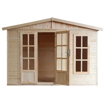 Das Gartenhaus überzeugt durch sein klassisches Design und ist dabei in der Farbe Natur gehalten. Es eignet sich für den universellen Einsatz als Geräteschuppen, Gartenpavillon oder Freizeithaus.