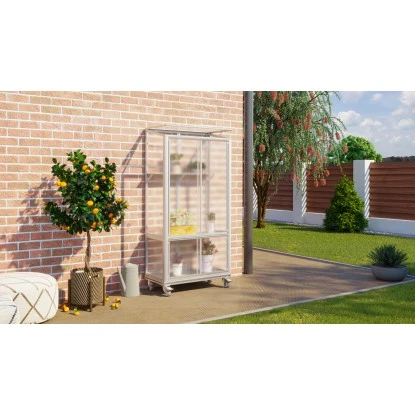 So viel Platz gibt selbst der Stadtbalkon her: mit gerade 0,35 m² fügt sich das Balkongewächshaus Polis von Vitavia harmonisch selbst auf kleineren Balkonen ein und erlaubt seinen Nutzern die frische Tomate zum Frühstück ohne den Weg nach draußen anzutreten. Vollendete Verarbeitung wie der geschlossene Boden, die leicht und getrennt voneinander bedienbaren Schiebetüren und das zusätzliche Regal machen es dabei nicht nur schön, sondern auch mühelos bedienbar.