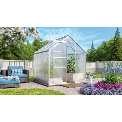 Mit Grundflächen von 2,5 bis 6,2 m², filigranen Aluminiumprofilen und einer Eindeckung mit Hohlkammerplatten (Gartensaison Hohlkammerplatten) ebnet das Gewächshaus Apollo den Weg ins Neuland Gewächshausgärtnern. Einsteiger wählen aus den vier verschiedenen Größen die Anbaufläche, die sie meistern können. Sie bestücken das Haus je nach gewünschten Isoliereigenschaften mit jeweils ca. 4 oder 6 mm Hohlkammerplatten. Mit der umfangreichen Standardausstattung können Sie sich sicher sein, dass alles Nötige da ist: Stahlfundamentrahmen, Dachfenster für die Be- und Entlüftung sowie Regenrinnen zum Sammeln von Regenwasser.