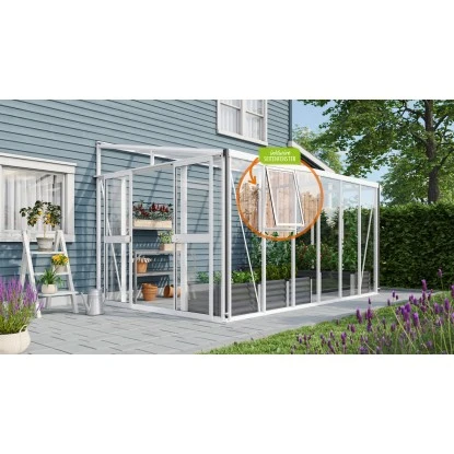 Dieses Premium-Anlehnhaus verbessert die Lebensqualität vieler Hobbygärtnerinnen und Hobbygärtner: In wenigen Schritten sind sie in ihrer grünen Oase und genießen den rundum Ausblick in den eigenen Garten. Das großzügige Modell bietet genug Platz für Ihr Gemüse, frostempfindliche Pflanzen und auch für Sie!