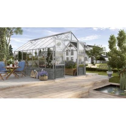So wohnlich kann es im Grünen sein: Auf einem soliden Sockel stehend wird Ihr Gewächshaus schnell zum zweiten Zuhause und bringt dabei ein wenig englischen Stil in Ihren Garten. Das Gewächshaus Cassandra hebt sich durch einen gemauerten Sockel vom klassischen, vollverglasten Gewächshaus ab.